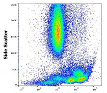 Flow Cytometry: Bovine peripheral whole blood stained with ARG42463 anti-MHC Class I (alpha + beta2m chains) antibody [IVA26] at 10 µg/ml dilution, followed by APC-conjugated Goat anti-Mouse antibody.