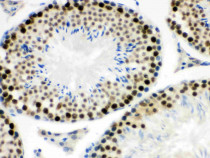 Immunohistochemistry: Paraffin-embedded Mouse testis stained with ARG40483 anti-MNAT1 antibody.