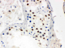 Immunohistochemistry: Paraffin-embedded Human testis stained with ARG40483 anti-MNAT1 antibody.