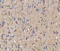 Immunohistochemistry: Rat brain stained with ARG44236 anti-MOSPD2 antibody at 2 μg/ml dilution.