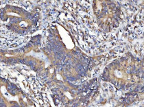 Immunohistochemistry: Human colorectal adenocarcinoma stained with ARG44236 anti-MOSPD2 antibody at 2 μg/ml dilution.