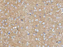 Immunohistochemistry: Human brain stained with ARG44236 anti-MOSPD2 antibody at 2 μg/ml dilution.