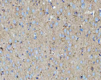 Immunohistochemistry: Mouse brain stained with ARG44236 anti-MOSPD2 antibody at 2 μg/ml dilution.