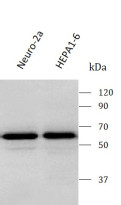 Western blot: Neuro-2a and HEPA1-6 stained with ARG44236 anti-MOSPD2 antibody at 0.5 μg/mL dilution.