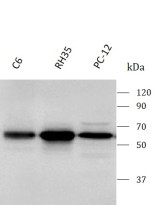 Western blot: C6, RH35 and PC-12 stained with ARG44236 anti-MOSPD2 antibody at 0.5 μg/mL dilution.