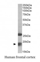 Western blot: 35 µg of Human frontal cortex lysate (in RIPA buffer) stained with ARG42225 anti-MPV17 antibody at 2 µg/ml dilution and incubated at RT for 1 hour.