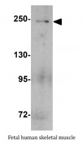 Western blot: Fetal human skeletal muscle lysate stained with ARG40487 anti-MYH3 antibody at 1 µg/ml dilution.