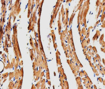 Immunohistochemistry: Human skeletal muscle stained with ARG45689 anti-MYH6 antibody at 2 μg/ml dilution.