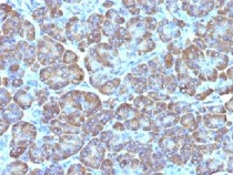 Immunohistochemistry: Formalin-fixed, paraffin-embedded Human pancreas stained with ARG55996 anti-Mitochondria antibody [MTC02].