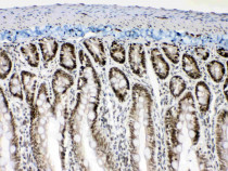 Immunohistochemistry: Paraffin-embedded Mouse intestine tissue. Antigen Retrieval: Heat mediation was performed in Citrate buffer (pH 6.0, epitope retrieval solution) for 20 min. The tissue section was blocked with 10% goat serum. The tissue section was then stained with ARG41352 anti-Musashi 1 antibody at 1 µg/ml dilution, overnight at 4°C.