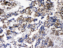 Immunohistochemistry: Paraffin-embedded Human lung cancer tissue. Antigen Retrieval: Heat mediation was performed in Citrate buffer (pH 6.0, epitope retrieval solution) for 20 min. The tissue section was blocked with 10% goat serum. The tissue section was then stained with ARG41352 anti-Musashi 1 antibody at 1 µg/ml dilution, overnight at 4°C.