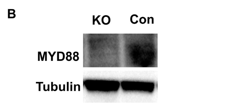 | 生物功能 | Adapter protein involved in the Toll-like receptor and IL-1 receptor signaling pathway in the innate immune response. Acts via IRAK1, IRAK2, IRF7 and TRAF6, leading to NF-kappa-B activation, cytokine secretion and the inflammatory response. Increases IL-8 transcription. Involved in IL-18-mediated signaling pathway. Activates IRF1 resulting in its rapid migration into the nucleus to mediate an efficient induction of IFN-beta, NOS2/INOS, and IL12A genes. MyD88-mediated signaling in intestinal epithelial cells is crucial for maintenance of gut homeostasis and controls the expression of the antimicrobial lectin REG3G in the small intestine. [UniProt] |