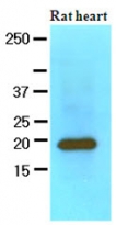 Western blot: 60 µg of Rat heart stained with ARG56986 anti-Myosin Light Chain 2 antibody [3B2] at 1:1000.