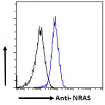 Flow Cytometry: Paraformaldehyde-fixed MCF7 cells permeabilized with 0.5% Triton. Cells were stained with ARG64621 anti-N-Ras antibody (blue line) at 10 µg/ml dilution for 1 hour, followed by incubation with Alexa FluorR 488 labelled secondary antibody. IgG control: Unimmunized goat IgG (black line).