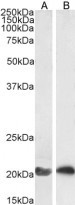 Western blot: 35 µg of Jurkat (A) and MCF7 (B) cell lysates (in RIPA buffer) stained with ARG64621 anti-N-Ras antibody at 0.3 µg/ml (A) and 0.1 µg/ml (B) dilutions and incubated at RT for 1 hour.