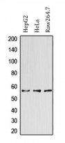 Western blot: HepG2, HeLa and Raw264.7 whole cell lysates stained with ARG66550 anti-NAB2 antibody.