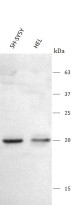 Western blot: SH-SY5Y and HEL stained with ARG44198 anti-NAP1L5 antibody at 0.5 μg/mL dilution.