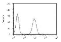 Flow Cytometry: HL-60 cells stained with ARG40129 anti-NASP antibody (right histogram) or without primary antibody as control (left histogram), followed by incubation with FITC labelled secondary antibody.