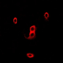 Immunofluorescence: Formalin-fixed HeLa cells were permeabilized with 0.1% Triton X-100 in TBS for 5-10 minutes and blocked with 3% BSA-PBS for 30 minutes at room temperature. Cells were stained with ARG66556 anti-NCF2 / p67phox antibody (red) in 3% BSA-PBS and incubated overnight at 4°C in a hidified chamber.