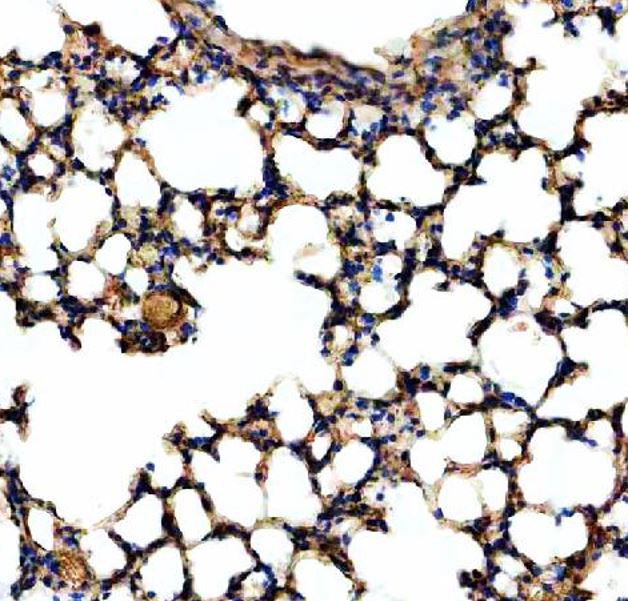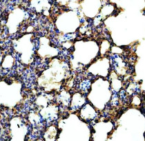 Immunohistochemistry: Mouse lung stained with ARG45921 anti-NEK5 antibody at 2 μg/ml dilution.