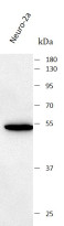 Western blot: Neuro-2a stained with ARG44425 anti-NEUROD2 antibody at 2 μg/mL dilution.