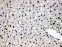 Immunohistochemistry: Formalin-fixed and paraffin-embedded Mouse liver stained with ARG23706 anti-NFIA antibody at 1 µg/ml dilution. Antigen Retrieval: Steam tissue section in Citrate buffer (pH 6.0) for 20 min.