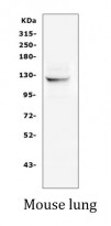 Western blot: 50 µg of sample under reducing conditions. Mouse lung lysate stained with ARG42965 anti-NLRP2 / NALP2 antibody at 0.5 µg/ml dilution, overnight at 4°C.