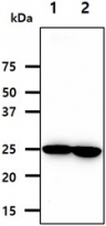 Western blot: 40 µg of 1) HeLa cell lysate, 2) A549 cell lysate stained with ARG57060 anti-NNMT antibody [11G11] at 1:1000.