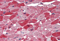 Immunohistochemistry: Paraffin-embedded Human heart tissue. Antigen Retrieval: Steam tissue section in Citrate buffer (pH 6.0). The tissue section was stained with ARG64477 anti-NOVA1 antibody at 5 µg/ml dilution followed by AP-staining.