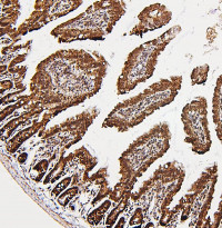 Immunohistochemistry: Paraffin-embedded Mouse intestine tissue. Antigen Retrieval: Heat mediation was performed in Citrate buffer (pH 6.0) for 20 min. The tissue section was blocked with 10% goat serum. The tissue section was then stained with ARG43116 anti-NR1I2 / PXR antibody at 1 µg/ml dilution, overnight at 4°C.