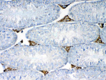 Immunohistochemistry: Paraffin-embedded Mouse testis tissue. Antigen Retrieval: Heat mediation was performed in Citrate buffer (pH 6.0, epitope retrieval solution) for 20 min. The tissue section was blocked with 10% goat serum. The tissue section was then stained with ARG42024 anti-NSF antibody at 1 µg/ml dilution, overnight at 4°C.