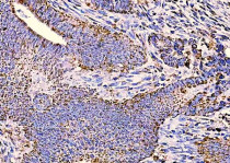 Immunohistochemistry: Human colorectal adenocarcinoma stained with ARG44173 anti-NTN3 antibody at 2 μg/mL dilution.