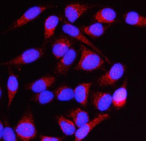Immunofluorescence: HeLa stained with ARG44176 anti-NUBPL antibody at 5 μg/mL dilution.