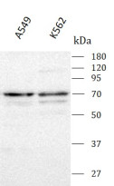 Western blot: A549 and K562 stained with ARG44177 anti-NUDCD1 antibody at 0.5 μg/mL dilution.