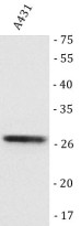 Western blot: A431 stained with ARG45638 anti-NUDT8 antibody at 0.5 μg/ml dilution.