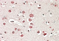 Immunohistochemistry: paraffin embedded Human Cerebral Cortex. (Steamed antigen retrieval with citrate buffer pH 6) stained with ARG64081 anti-Neurobeachin antibody at 5 µg/ml dilution followed by AP-staining.