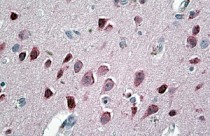 Immunohistochemistry: Paraffin-embedded Human cortex tissue. Antigen Retrieval: Steam tissue section in Citrate buffer (pH 6.0). The tissue section was stained with ARG65051 anti-Neurogranin precursor antibody at 5 µg/ml dilution followed by AP-staining.