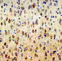 Immunohistochemistry: Mouse brain stained with ARG45918 anti-Norbin antibody at 2 μg/ml dilution.