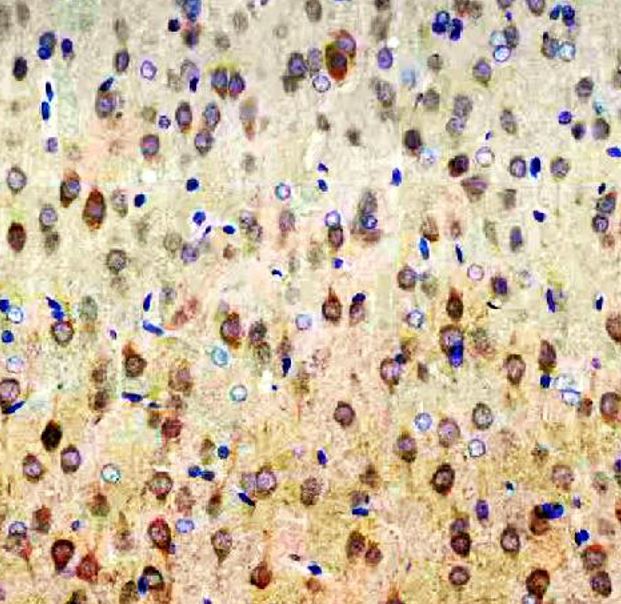 Immunohistochemistry: Rat brain stained with ARG45918 anti-Norbin antibody at 2 μg/ml dilution.