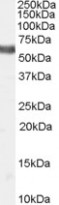 Western Blot: Human Thyroid lysate (35 µg protein in RIPA buffer) stained with ARG64105 anti-Nur77 / TR3 (isoform a) antibody at 2 µg/ml dilution.