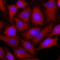 Immunoflorescense: HeLa cells stained with ARG56993 anti-OAT antibody [23A2] 1:500 (Red).