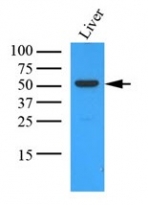 Western blot: 35 µg of Mouse liver stained with ARG56993 anti-OAT antibody [23A2] at 1:1000.