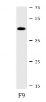 Western blot: 20 µg of F9 cell lysate stained with ARG56142 anti-OCT4 antibody.