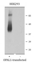 Western blot: OPAL1-transfected HEK293 and non-transfected HEK293. Cell lysates were stained with ARG42373 anti-OPAL1 antibody [OPAL1-01].