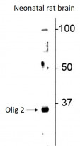 | 应用说明 | Specific for the ~32 kDa Olig2 protein in Western blots. The antibody also works well for immunohistochemistry and immunocytochemistry. * The dilutions indicate recommended starting dilutions and the optimal dilutions or concentrations should be determined by the scientist. |