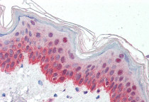 Immunohistochemistry: Paraffin-embedded Human skin tissue. Antigen Retrieval: Steam tissue section in Citrate buffer (pH 6.0). The tissue section was stained with ARG64159 anti-P4HA1 antibody at 5 µg/ml dilution followed by AP-staining.