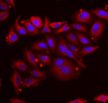 Immunofluorescence: U2OS stained with ARG44372 anti-PAICS / PAIS antibody at 1:50 dilution.