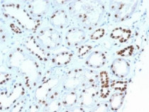 Immunohistochemistry: Formalin-fixed and paraffin-embedded Human renal cell carcinoma tissue stained with ARG41763 anti-PAX8 antibody [PAX8/1492]. Antigen Retrieval: Boil tissue section in 10 mM Tris with 1 mM EDTA (pH 9.0) for 10-20 min, followed by cooling at RT for 20 min.
