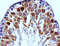 Immunohistochemistry: Paraffin-embedded Rat testis tissue stained with ARG57922 anti-PBK / TOPK antibody at 1:25 dilution.