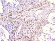 Immunohistochemistry: Paraffin-embedded Human prostatic cancer tissue. Antigen Retrieval: Heat mediation was performed in Citrate buffer (pH 6.0) for 20 min. The tissue section was blocked with 10% goat serum. The tissue section was then stained with ARG43089 anti-PCDH15 antibody at 1 µg/ml dilution, overnight at 4°C.